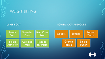Weightlifting: These exercises I chose myself based upon their accessibility.